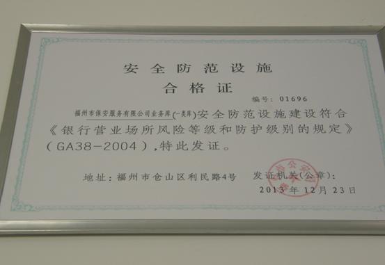 2013年12月23日经福州市公安局批准成立,现承接福建省中国银行、福州市工商银行(八县)、福建石狮农商、中信银行(连江中信、福清中信)、招商银行(自贸区)、浦发银行、福州电力、福州地铁、中石化、中石油(八县)、欣辰通公司、闽清基地、罗源基地等,总共网点150个,经营范围:本外币现钞、贵金属、有价单证、银行柜员现金箱。金厍管理的指导思想是:“统筹规划、各负其责、安全第一、高效运营”。金库工作以“安全责任、重于泰山”为宗旨,为广大客户提供优质安全服务,做到零差错,被公司评为先进集体荣誉称号。